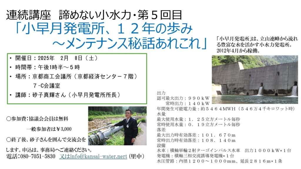 「諦めない小水力 連続講座5回目:小早月発電所、12年の歩み~メンテナンス秘話あれこれ」
