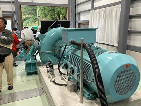 最後に、山の下にある発電所建屋本体を見学した。「ここで年間3,000MWh以上の電力が生まれます」と聞いた瞬間、不思議と電気が生まれる場面が目に浮かんできた。思えば、山の奥から取った水が、長い水路を通り、この発電所まで来て、回って、電気になる。当たり前に使っている電気にも、こんなドラマのようなストーリーがあることに気付かされる視察だった。