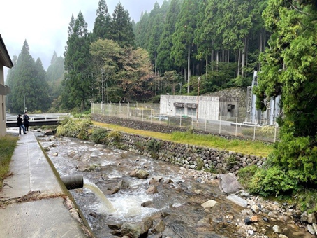次に、川の水を導水路に送るための取水設備を見た。ここで一番印象に残ったのは、落ち葉の話だった。黒河川周辺は広葉樹が多く、秋には大量の葉っぱが水に混ざるらしい。それが取水口に詰まると発電が止まるので、スクリーンをこまめに掃除したり、ネットを張ったり、維持管理がとても大切なのだと教えてもらった。「電気をつくるって、こんなに地道なんだな」と、とても頭が下がる思いだった。