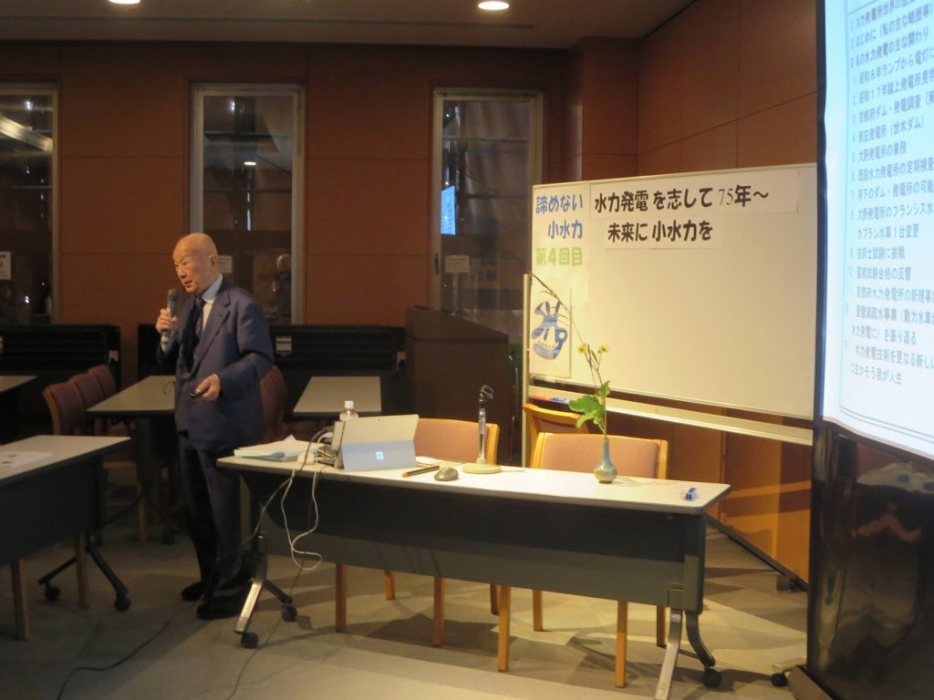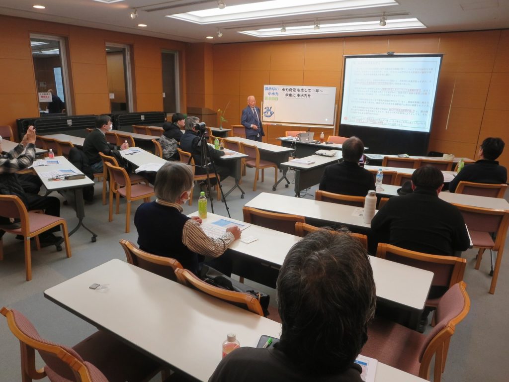 「仕掛けを作って仕組みをのこす」というキャッチフレーズがタイトルになっている発電所建設の工程を水海水力の村上さんから詳しい説明をお聞きしたが、資料には記載されないいろいろなご苦労を交えたお話であった。